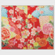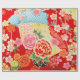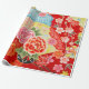 Red Blue Yellow Japanese Kimono Floral Decoupage Geschenkpapier