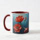 Genießen Sie eine Tasse Kaffee mit diesem hübschen Blumendesign in der Tasse. Zenya Zenyaris Kunstschaffen in Zusammenarbeit mit AI - 2025. Rote Blume Joy Coffee Tasse Design.