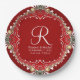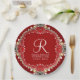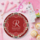 Red Bohemisch Batik Monogram V2 Wedding Pappteller