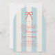 This coquette bridal shower invitation features a red bow on a cream background with light blue stripes. The reverse side features a cream background with a red bow pattern. Personalize it for your needs. You can find matching products at my store.
