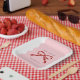 Red Bow Coquette Squiggly Borders Christmas Pappteller