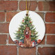 An der Vorderseite dieses Holiday-Ornaments befindet sich das Bild eines hübschen irischen Setter-Hundes mit festlichem rotem Bogen. Der Hund sitzt vor einem verzierten Holiday-Baum. Auf der Rückseite steht rot und grün "MERRY CHRISTMAS", und es gibt zusätzliche Textfelder, die Sie anpassen können. Lass es sagen, was du willst!