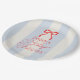 Red Bow & Pale Blue Stripes Baby Shower Pappteller