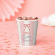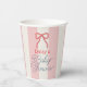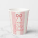 This coquette baby shower paper cup features a red bow on a cream background with pink stripes. Personalize it for your needs. You can find matching products at my store.