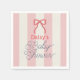 This coquette baby shower napkin features a red bow on a cream background with pink stripes. Personalize it for your needs. You can find matching products at my store.