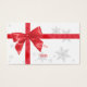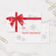 Weihnachts- / Feiertage-Geschenketiketten mit rotem Bogen und Band auf weißem Hintergrund mit Schneeflocken und dem personalisierten Gruß der Saison auf der Rückseite.