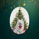 An der Vorderseite dieses Holiday-Ornaments befindet sich das Bild eines schönen weißen Samoyed Hundes mit festlichem rotem Bogen. Der Hund sitzt vor einem verzierten Holiday-Baum. Auf der Rückseite steht rot und grün "MERRY CHRISTMAS", und es gibt zusätzliche Textfelder, die Sie anpassen können. Lass es sagen, was du willst!