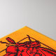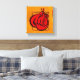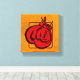 8x8 Leinwand. Digitales Bild eines Paares roter Boxhandschuhe schattiert und in schwarz umrissen. Die Handschuhe sind teilweise von einer rötlichen schwarzen Kontur in quadratischer Form gerahmt. Stilvolles Design. Hintergrund ist eine goldene gelbliche Aquarellstruktur.