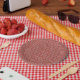 Die Grafik im urbanen Stil weist einen Hintergrund aus roten Ziegeln auf