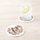 An diesem Untersetzer steht ein schönes Porträt eines roten, braunen und weißen australischen Schäferhundes im Zentrum eines hübschen Herbstkranzes in Zimtbraun, Bräune und Sahne. Alles ist auf einem weißen Hintergrund platziert.