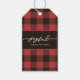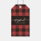 Red Holiday Buffalo Kariert mit Joyful Script und Familienname Weihnachtsgeschenk Tag.
