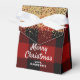 Rot und Schwarz Buffalo Kariert Gefallen Box in einer dreieckigen Form mit Bogen, mit Gold Glitzer Confetti und personalisierte Formulierung ist perfekt für Weihnachtsgeschenke und Feiertag Gefallen.