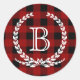 Red Buffalo Karo Pattern Monogram Runder Aufkleber