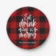 Add a cozy rustic touch to your holiday celebrations with these festive red buffalo plaid Christmas paper plates. Featuring the cheerful phrase “Eat, drink and be merry” in stylish hand-lettered script, this classic design brings warmth and charm to any Christmas party table. Accented with white holly and snowflake details, these plates are perfect for family gatherings, office parties, winter birthdays, and holiday dinners.
