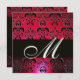 RED BURGUNDY BLACK DAMASK MONOGRAM, rubinweiß Einladung