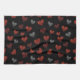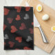 Red Burgundy Silver Glitter Hearts on Black Geschirrtuch