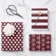 Red Burgundy White Polka Dots Streifen Schneeflock Geschenkpapier Set