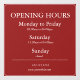 Make your business hours clear and stylish with this customizable Window Cling! Perfect for storefront doors and windows, this reusable cling displays your opening hours with a clean, professional design that catches the eye. Easy to apply and remove without residue — ideal for shops, cafes, salons, and offices.