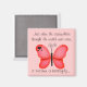 Schönes Schmetterling motivierend Zitat in rot auf einem Magneten. "Als die Raupe dachte, die Welt sei vorbei, wurde sie zu einem Schmetterling."