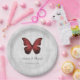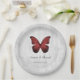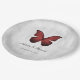 Elegante und einfache Hochzeitspapier-Teller mit einem Roten Schmetterling vor grauem Grunge-Hintergrund. Dieses Design ist eine einzigartige Wahl für eine moderne Hochzeit. Einfach an Ihre Hochzeitsdetails anpassen. Klicken Sie auf "Anpassen", um weitere Personalisierungsoptionen zu erhalten.
