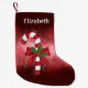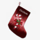 Red Candy Cane auf einem roten Bokeh Hintergrund Kleiner Weihnachtsstrumpf