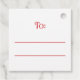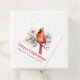 To from Christmas hang tags featuring a beautiful watercolor painting of a red cardinal sitting on a snowy branch with red berries, and red text "Merry Christmas" with your family name or custom text below. On the back is red text “to” in an elegant, festive font and two lines.
