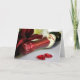 Fotografieren einer Flasche Roten Champagner mit den Worten "Bisou Bisou", Französisch für "Kiss Kuss", mit rot-weißen Blume und roten Kristallherzen.