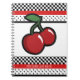 Red Cherries Red Black & White Retro Custom Notebook. Passen Sie die Vorderseite mit oder ohne Text an.