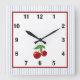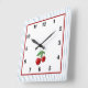 Red Cherry auf Blue Stripes Quadratische Wanduhr