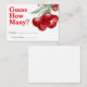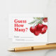 Die "Red Cherry on Top Guess How Many Game Card" zeichnet sich durch ein spielerisches und lebendiges rotes Kirschdesign aus und macht es zu einer unterhaltsamen und interaktiven Ergänzung Ihrer Babydusche. Die Gäste können sich vorstellen, wie viele Bonbons (oder andere Gegenstände) sich in einem Glas befinden, was die Veranstaltung noch aufregender macht. Das charmante Kirschthema und die lebhaften Farben machen diese Karte zu einem idealen Ort für eine Babydusche mit roter Kirsche.