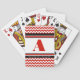 Custom Bicycle Brand playing cards, personalized with your initial and text. This deck of cards is design with a red & white zigzag chevron pattern, with red, black and white, lines. "Own" ist der Game at your next gathering, or give as a gift at any chance.