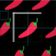Ein minimalistischer, roter Chili, in einem wiederholten Muster.