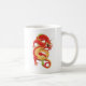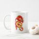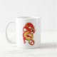Rote chinesische Drachen sind mythische Wesen, die ein Symbol des Glücks sind. Sie sind auch eines der chinesischen Tierschutzzeichen. Grafische Design-Illustration auf der Kaffee-Tasse für Drachenfans und China-Mythologen.