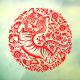 Traditioneller, roter chinesischer Neujahrstiger mit Blume.
