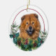 Red Chow Chow Dog Evergreen Berry Wreath Keramik Ornament
