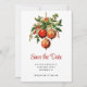 Save the Date Karte mit einer Vintagen Stildarstellung. 3 rote Weihnachtsbaumbläschen umgeben von grünen Heiligen und Beeren. Retro cool.