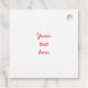 Dieses viereckige Weihnachtsgeschmacksschild ist mit einem roten Ornament mit Schneeflocken aus weißem Glitzer und roten, verschwommenen Lichtern im Hintergrund und "Frohe Weihnachten" in der unteren links Ecke auf der Vorderseite versehen. Auf der Rückseite ist eine Vorlage für den Text in einem roten Skript-Schriftart.