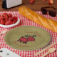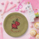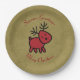 Papier Teller, die lesen: Frohe Festtage und Frohe Weihnachten. Text ist auch anpassbar oder abnehmbar. Entworfen mit einer roten Weihnachtsreiniger Illustration. Feierlich und niedlich. Der Hintergrund ist ein digitales Bild von braunem Kraftpapier, nicht von tatsächlichem Kraftpapier.