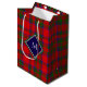 Red Christmas Wool Texture Plaid with Monogram Mittlere Geschenktüte