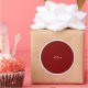 Dunkelroter Kreishintergrund mit weißem Rahmen für die Personalisierung. Fügen Sie Ihren eigenen Text ein.