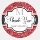 Elegant Vielen Dank auf niedlichem Rot, Schwarz und Weiß Country Paisley Hintergrund. Ideal für Hochzeiten, Verlobungsfeiern, Paarduschen und Brautparty. Personalisiert mit dem Namen der Braut und des Bräutigams und Monogramm.