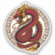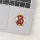 Ein mächtiger chinesischer Drache, der in lebhaften Rot- und Goldtönen dargestellt wird, spaltet sich innerhalb eines kreisförmigen Rahmens mit komplizierten geometrischen Mustern. Der Kopf des Drachen wird erhöht, seine Augen leuchten mit einem intensiven, fast bedrohlichen Ausdruck. Die Skalen sind detailgetreu dargestellt und zeigen ihre Beschaffenheit und ihr Muster. Der mächtige Körper des Drachen ist in eine dynamische Pose eingewickelt, was sowohl Kraft als auch Agility nahe legt.