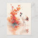 Red Crowned Crane with Orange Blossom Branch Postkarte