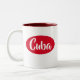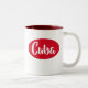 Eine rot-weiße Tasse, die "Kuba" auf ihr sagt. Ein schönes, einfaches Design, das sich von weitem unterscheidet.