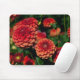 Herrliche, tiefe rote Dahlien auf einem dunkelgrünen Hintergrund auf diesem Mauspad.