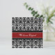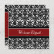 Entsprechende Ankündigungskarten in elegantem rot, schwarz und weiß klassischem Blumendüsternmuster, vollständig anpassbar mit Ihren Namen und Hochzeitsdetails, die perfekte Möglichkeit, Ihre Entfaltung zu Freunden und Familie anzukündigen. Erhältlich in einer breiten Palette von passenden Hochzeitsprodukten.