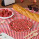 Karo aus diesem niedlichen Sesamstrasse-Muster mit verschiedenen lächelnden, tanzenden Elmo-Posen! © 2021 Sesame Workshop. www.sesamestreet.org