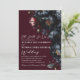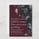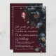 Set die Bühne für ein überwältigend elegantes Event mit dieser gotischen Einladung. Eine üppige und luxuriöse blumengeschmückte Hochzeit mit einem Strauß aus schwarzen und roten Pfannkuchen und blauen Beeren vor rotem Hintergrund. Auf der Rückseite der Einladungen ist ein QR-UAWG-Code und Hochzeitsdetails. Es ist perfekt für eine dramatische und unvergessliche Feier. Sie sind ideal für Liebhaber von dunkler Romantik und zeitlosen Reiz.