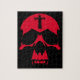 Gothischer Dämon Vampir roter Schädel, Mauspad. Dunkle Thematik Kunst des Schädels eines Dämons mit einem Kruzifix auf der Stirn.