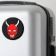 Runder Magnet mit hinterhältiger roter Teufelsgesicht.
